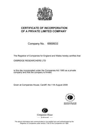 either enter the company name: Oxbridge Researchers Ltd or the registration number 06669933.