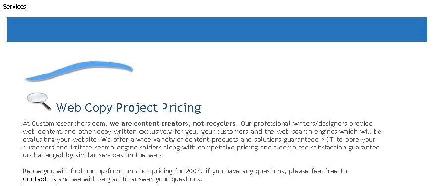 What about her webcopy? "Borrowed" from Getwebcontent.com. Check out the text in the image below and take a look at this: customresearchers.com/Services.php